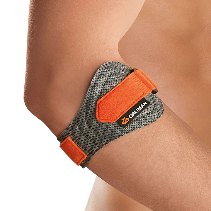 Tem uma almofada em silicone anato´mica para distribuir a pressa~o da banda ela´stica na zona proeminente para os tecidos circundantes, absorvendo as vibrac¸o~es que possam existir na zona do brac¸o.
